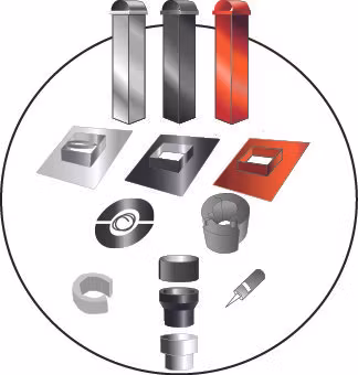 LANDY FACIL® levereras som komplett paket för antingen toppanslutet eller bakanslutet utförande, med fyrkantig takhuv med röktunnel eller rund ovan tak, täckplåtar, kopplingsstycke och t o m isolering för bjälklagsgenomgång. En skorsten med hög funktionell och estetisk standard.