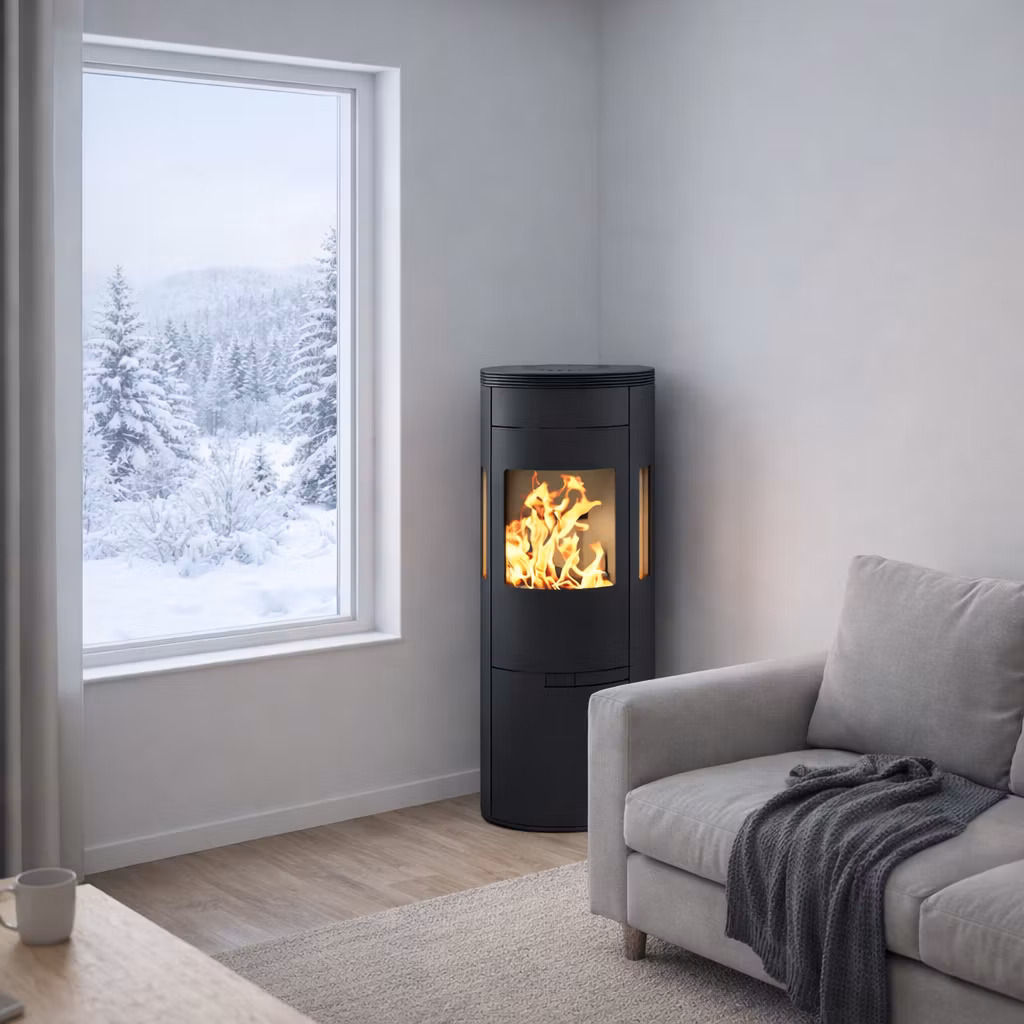 Kaminen är utformad med ett alternativ för extern lufttillförsel, vilket gör att du kan ansluta den till en extern luftkälla för förbränning. Detta är särskilt fördelaktigt för välisolerade eller lufttäta hem, eftersom det säkerställer att kaminen får den nödvändiga lufttillförseln för förbränning utan att dra in luft från rummet.