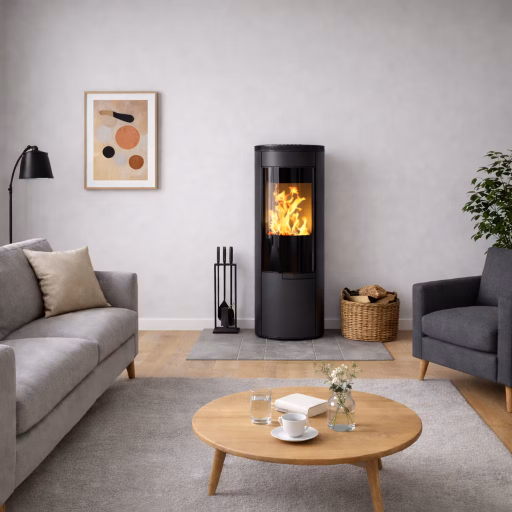 Kaminen är utformad med ett alternativ för extern lufttillförsel, vilket gör att du kan ansluta den till en extern luftkälla för förbränning. Detta är särskilt fördelaktigt för välisolerade eller lufttäta hem, eftersom det säkerställer att kaminen får den nödvändiga lufttillförseln för förbränning utan att dra in luft från rummet.