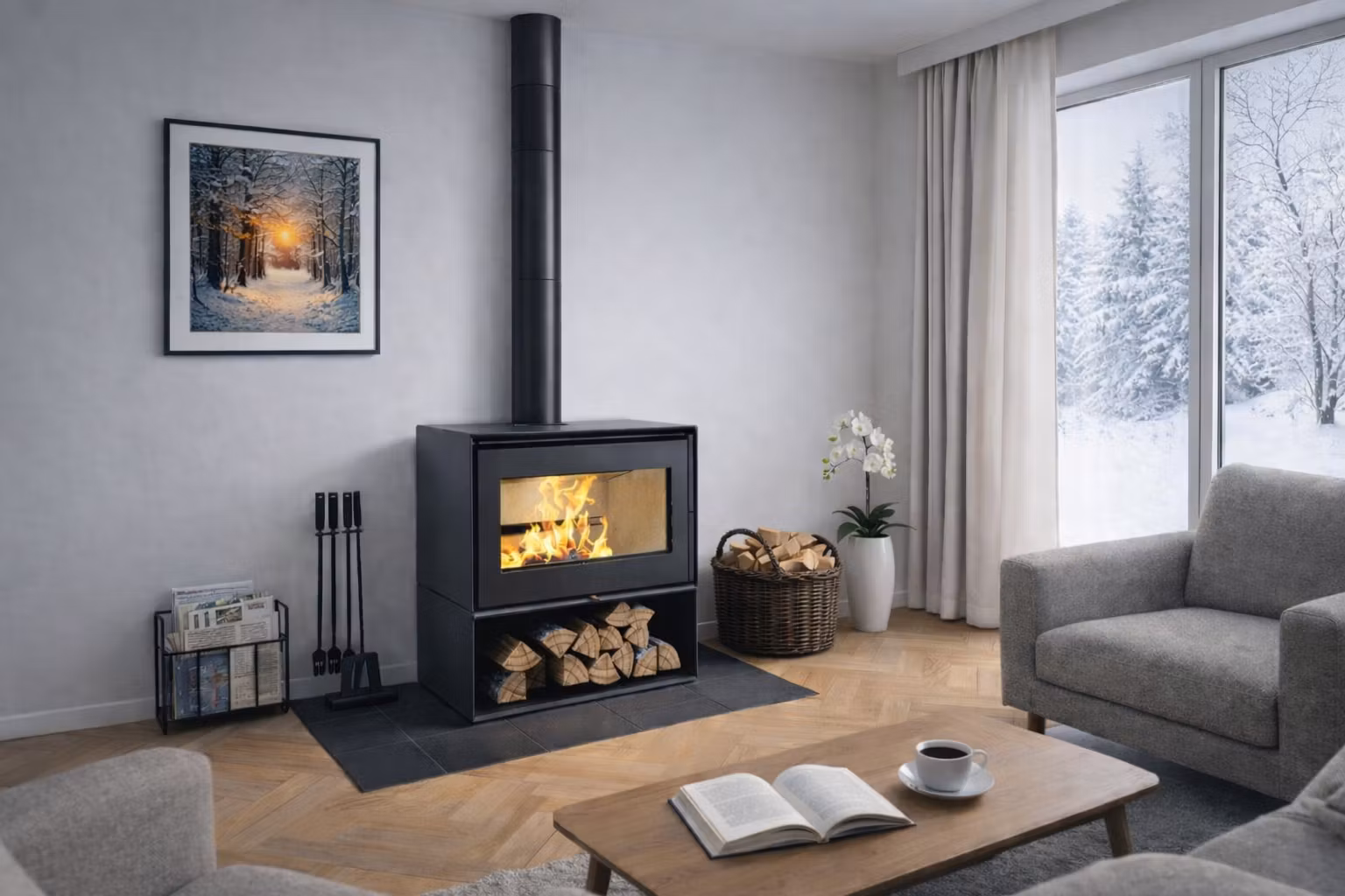 Box-seriens kaminer är utformade så att moduler kan läggas till när som helst (till exempel när kaminen redan är installerad) på kundens begäran. På så sätt får du plats för att förvara ved, tillbehör eller en fin dekoration i vardagsrummet.
