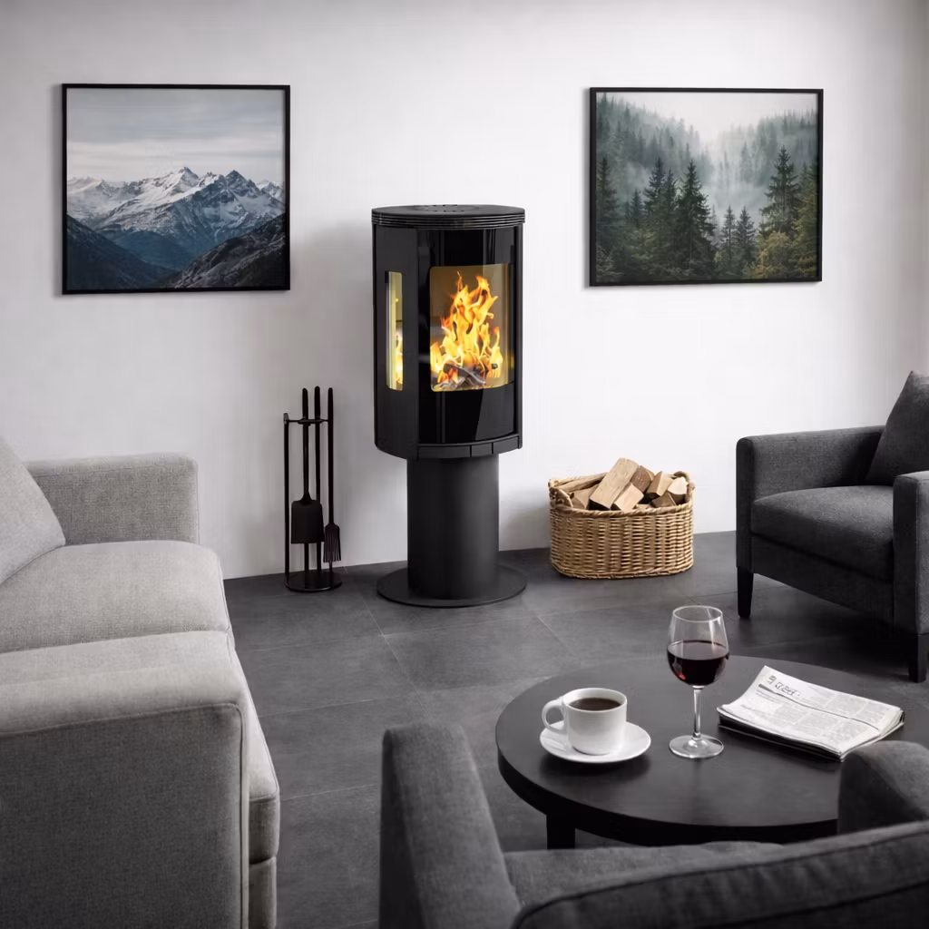 Kaminen är utformad med ett alternativ för extern lufttillförsel, vilket gör att du kan ansluta den till en extern luftkälla för förbränning. Detta är särskilt fördelaktigt för välisolerade eller lufttäta hem, eftersom det säkerställer att kaminen får den nödvändiga lufttillförseln för förbränning utan att dra in luft från rummet.