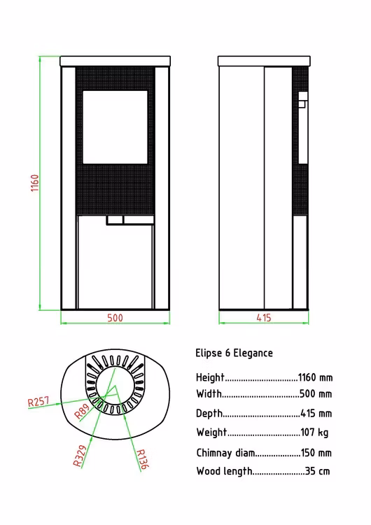 Eldstaden är inklädd i vermeculite och utrustad med skak röster och asklåda. Handtaget är integrerat i chassin.