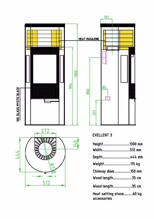 Med ett stort fönster låter Excellent 3W dig njuta av de fascinerande lågorna och den mysiga atmosfären i en traditionell vedeldad eld. Stålkroppen ger inte bara kaminen hållbarhet utan förstärker också dess moderna estetiska tilltal, vilket gör den till en blickfångare i alla bostadsutrymmen.