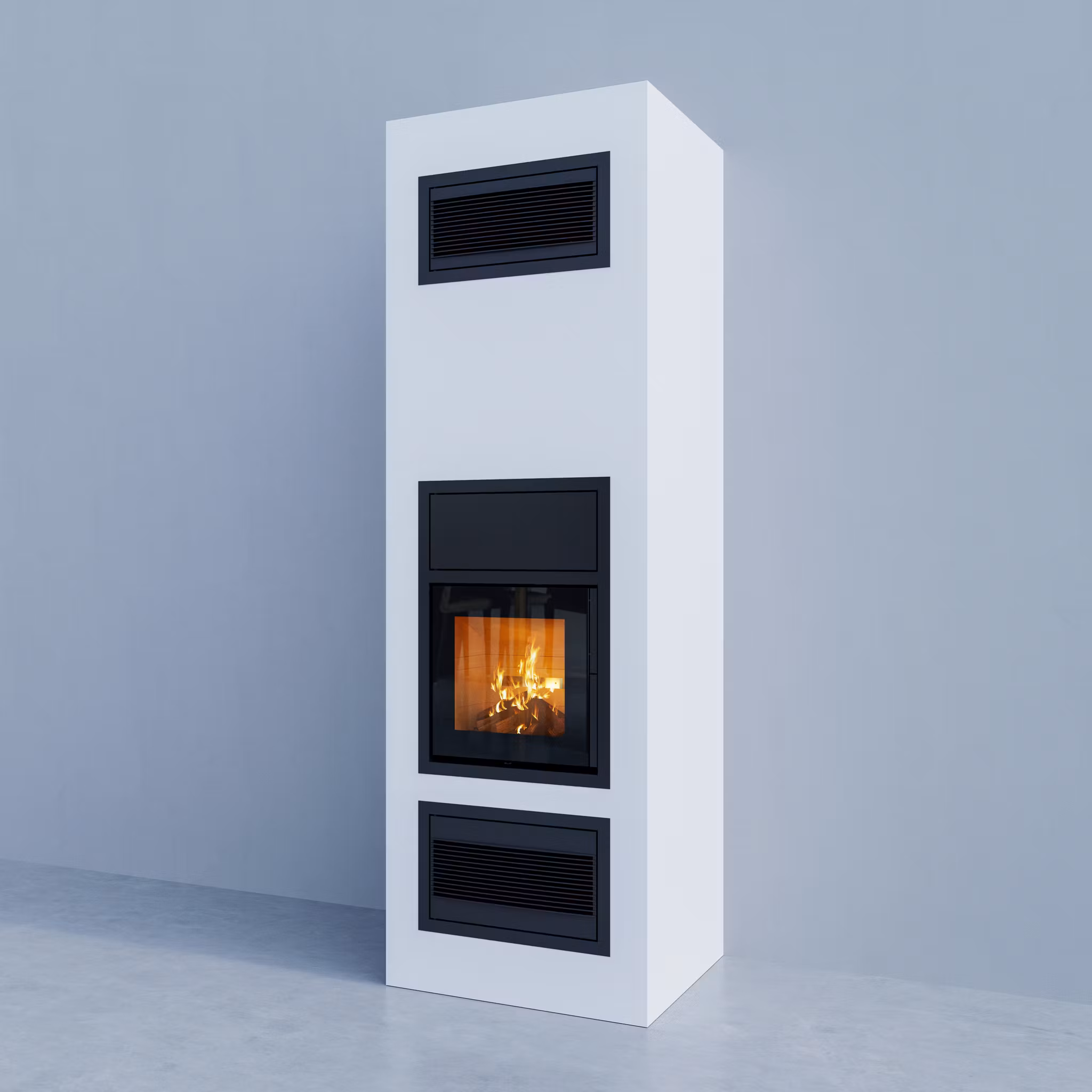 Insats Mini E är en modern spisinsats som är både vacker och enkel. Med denna insats har du friheten att utforma din egen eldstad. Den kan placeras in i en eldstad som du själv utformar. En av fördelarna med spisinsatsen är effekten som kommer från konvektionsvärmen, vilket du inte uppnår med en öppen spis. Mini E levereras med en ram som täcker en gammal eldstadsöppning. Luckan har ett långt handtag i hela luckans höjd som inte blir varma vid eldning. Luckan är helt glasad och ger ett modernt intryck till komplett insats.