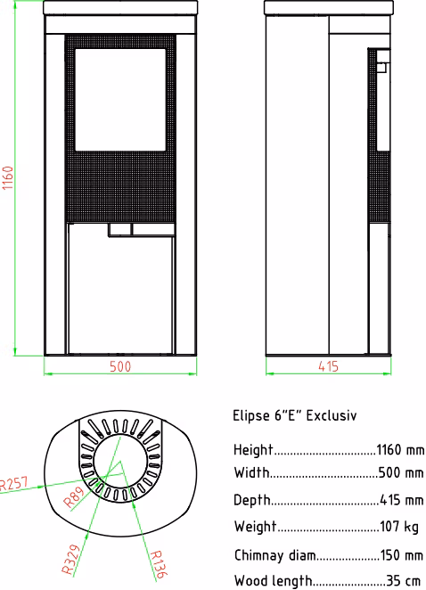En elegant eldstad Elippsen 6 E Black som är lätt att placera tack vare sin kompakta storlek.