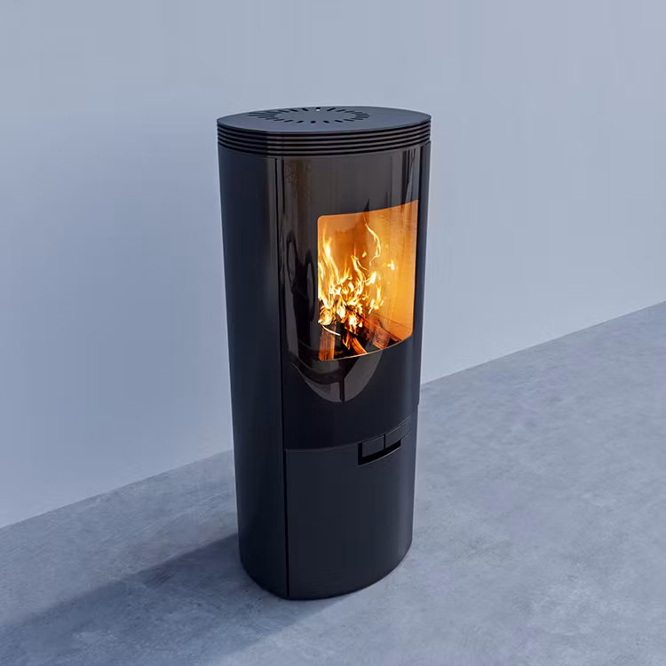 Kaminen är utformad med ett alternativ för extern lufttillförsel, vilket gör att du kan ansluta den till en extern luftkälla för förbränning. Detta är särskilt fördelaktigt för välisolerade eller lufttäta hem, eftersom det säkerställer att kaminen får den nödvändiga lufttillförseln för förbränning utan att dra in luft från rummet.
