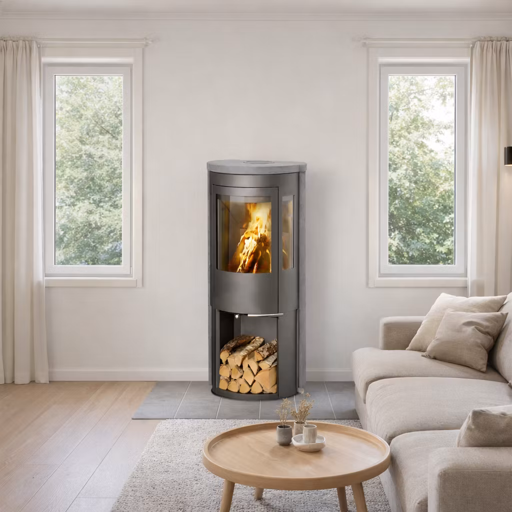 Dessutom är kaminen är utformad med ett alternativ för extern lufttillförsel, vilket gör att du kan ansluta den till en extern luftkälla för förbränning. Detta är särskilt fördelaktigt för välisolerade eller lufttäta hem, eftersom det säkerställer att kaminen får den nödvändiga lufttillförseln för förbränning utan att dra in luft från rummet.